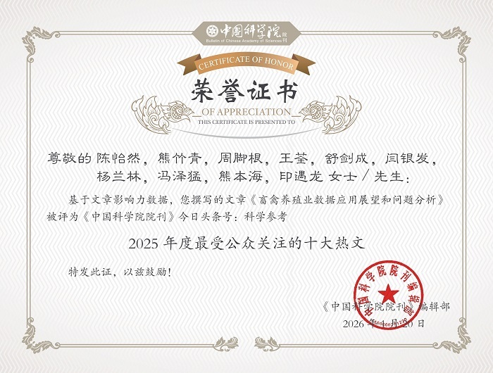 亚热带生态所印遇龙院士团队论文《畜禽养殖业数据应用展望和问题分析》入选《中国科学院院刊》今日头条号“科学参考”2025年度十大热文