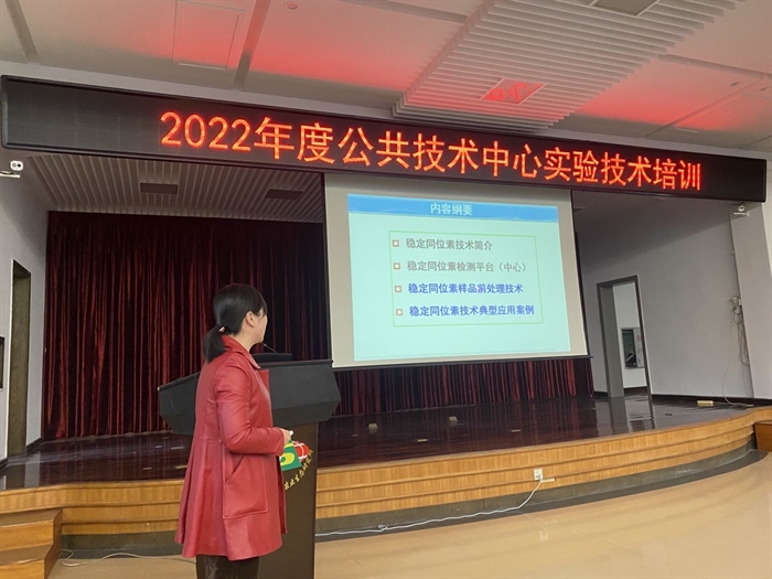 中心正高级工程师王久荣,高级工程师许丽卫、张丽萍、耿梅梅、袁红朝和工程师彭灿分别以《如何提高实验工作的效率》《数据修约与标准曲线配制》《无机分析技术及其应用》《有机分析技术(仪器分析)及其应用简介》《稳定同位素标记技术及其典型应用例析》《分子生物学技术及其应用简介》为题向参会人员介绍了实验室的安全知识、预实验的开展与方法验证,数据修约原则、标准曲线配制的要求与方法,无机分析技术、本所检测平台、典型分析方法及常用设备使用时的注意事项,有机分析技术、本所检测平台和常用检测方法以及前处理时的注意事项,稳定同位素技术、本所检测平台、标记实验设计和采样要求以及应用案例,分子生物学与显微成像平台的相关生物学技术原理与应用等。