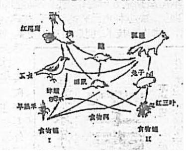 由于生态系统中食物营养的关系错综复杂而密切相关,许多食物链现象之间都存着一定的关系。由于是许多食物之间相互纵横交错,形成十分复杂的网络状结构—“食物网”。