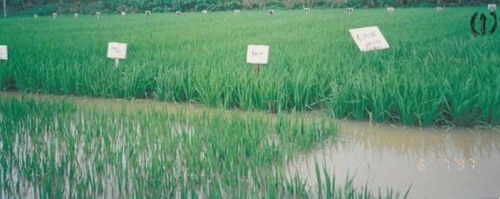 早稻不同品种(组合)生育后期(孕穗期)耐淹涝功能比较试验,以及抗涝剂减灾试验