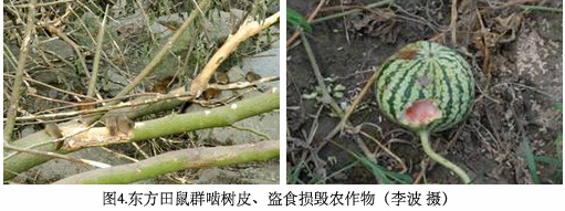 该鼠还爱啃树皮,最喜环食8-9cm粗的水杉、意大利杨等幼树韧皮致枯死,1980年代君山公园与茶场年植树8千棵,受害率竟达50%。
