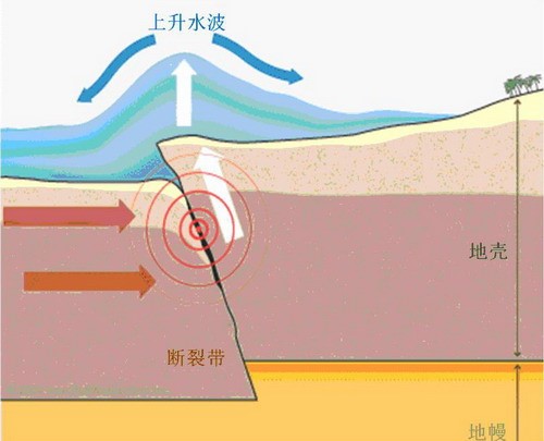 地震海啸是海底发生地震时,海底地形急剧升降变动引起海水强烈扰动。地震海啸一辈子保持了两中截然不同的身材,“上凸型”和“下凹型”?!吧贤剐汀笔怯赡承┕乖斓卣鹨鸷5椎乜谴蠓段У募本缟仙?,海水也随着隆起地区一起抬升,并在隆起区域上方出现大规模的海水积聚,在重力作用下,海水必须保持一个等势面以达到相对平衡,于是海水从波源区向四周扩散,形成汹涌巨浪。这种隆起型的海底地壳运动形成的海啸波在海岸首先表现为异常的涨潮现象。“下凹型”是由某些构造地震引起海底地壳大范围的急剧下降,海水首先向突然错动下陷的空间涌去,并在其上方出现海水大规?;郏庇拷暮K诤5子龅阶枇?,即翻回海面产生压缩波,形成长波大浪,并向四周传播与扩散,这种下降型的海底地壳运动形成的海啸在海岸首先表现为异常的退潮现象。