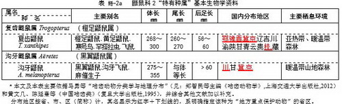 鼯鼠多数分布在亚洲东南部的热带与亚热带森林中,仅少数几种分布在欧亚大陆北部和北美洲的温带与寒温带森林中。我国分布7属18种,复齿鼯鼠属和沟牙鼯鼠属是2个单种属,系中国特有种、特有属,在经济、生态和科学研究“三有”价值上两者位居前列,现予首先介绍。其基本生物学资料列于表 鼯-2a。
