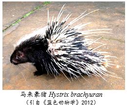 2000年发布的《国家?;さ挠幸娴幕蛘哂兄匾?、科学研究价值的陆生野生动物名录》(简称《国“三有”动物名录》)列有啮齿目Rodentia 5个科,鼯鼠科Pteromyidae、松鼠科Sciurdea及竹鼠科Rhizomyidae,为兽纲第46~80及84~87号,已在此前15篇逐一介绍;还有豪猪科Hystricidea 3种、鼠科Muridae 1种,为兽纲第81~83与88号。88号即鼠科之“社鼠Rattus niviventer”,今已改称Niviventer niviventer—白腹鼠属喜马拉雅社鼠,仅见个别作者曾报告在我国藏南的喜马拉雅山南坡有分布,但证据尚不足,有待调查核实,我们从略。本篇就讲豪猪科。