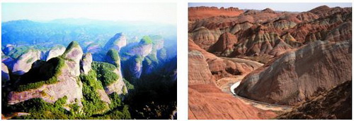图1 不同区域的丹霞地貌景观