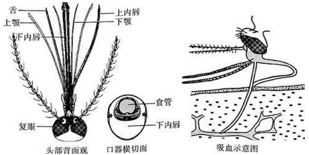 蚊子口器及吸血简图