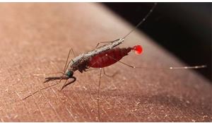 按蚊,身体呈灰色,翅黑白花斑,刺吸式口器,静止时腹部翘起,与停落面成一角度,其幼虫也是在水中发育。大多数按蚊都是疟原虫属生物的寄主,是传播疟疾的一大“罪魁祸首”,按蚊也因此又得名“疟蚊”。中华按蚊是我国按蚊中最常见的一种。