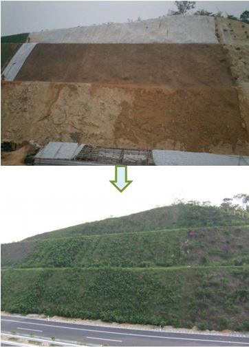 土壤菌中含有大量的微生物,如中温菌群、高温菌群、放线菌、丝状菌、水素细菌等,有机物经过这些土壤菌分解后,变成有机酸和无机营养成分。无机营养成分可以被植物吸收,而有机酸能对岩石矿物颗粒进行再分解,使粗颗粒逐渐变细,最终变成粘土,同时它还能供给植物营养,在土壤菌的作用下,人工制造出一个土壤层——生育基盘,这层土壤具有“高次团粒结构”,既有保水性、保肥性,又有透水性,透气性,还能有效抵抗雨蚀和风蚀,防止水土流失,能栖息多种土壤小动物和各种微生物,最适合植物生长。在生育基盘上,植物分孽多,生长快,根系发达。由于土壤菌绿化法与自然界的原理相近,所以生育基盘易于维持,保证了绿化的持久性。
