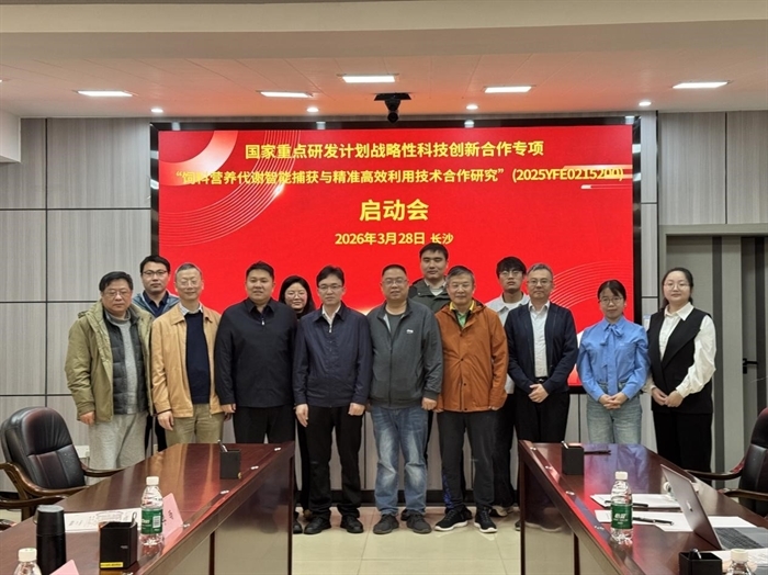 3月28日,由中国科学院亚热带农业生态研究所冯泽猛副研究员牵头承担的国家重点研发计划战略性科技创新合作专项“饲料营养代谢智能捕获与精准高效利用技术合作研究”(2025YFE0215200)启动会在长沙召开。中国农业科学院北京畜牧兽医研究所研究员唐湘方、北京市农林科学院信息技术研究中心研究员李斌、中山大学附属第五医院研究员李旸、长沙理工大学教授曹忠、华南农业大学教授邓近平、中国科学院亚热带农业生态研究所研究员李铁军等项目咨询专家;加拿大圭尔夫大学教授YANG SIMON YI(线上)及来自中国科学院动物研究所、中国农业科学院北京畜牧兽医研究所、中国农业大学、湖南农业大学、中国科学院亚热带农业生态研究所等项目参与单位的代表参加会议。