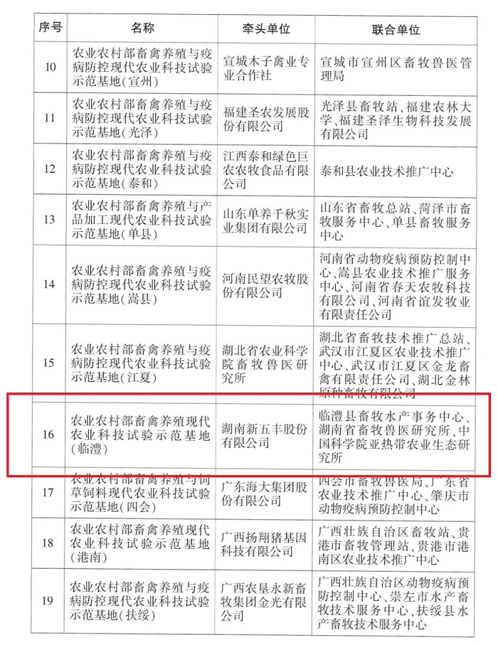 近日,农业农村部办公厅公布了2025年度农业农村部现代农业科技试验示范基地(第一批)。中国科学院亚热带农业生态研究所与新五丰股份有限公司等联合申报的农业农村部畜禽养殖现代农业科技试验示范基地(临澧)获批。