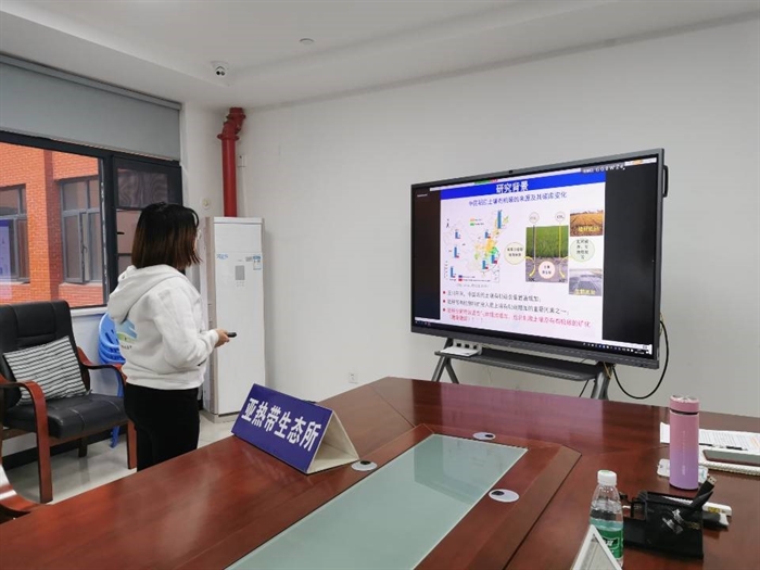 齐鸣、刘琪和鲁梦珍分别作《MyD88 缺失通过自噬依赖途径缓解仔猪肠道氧化应激损伤》、《厌氧水稻土中铁还原驱动的CO2 和CH4 激发效应机制》和《西南喀斯特常绿落叶阔叶林密度制约效应分析》的报告。三位同学的报告重点突出,逻辑清晰,简明扼要地介绍了相关研究内容及工作成果,充分展示了亚热带生态所研究生的学术风采。在提问环节,专家评委对汇报内容进行全方位的点评并提出宝贵建议。