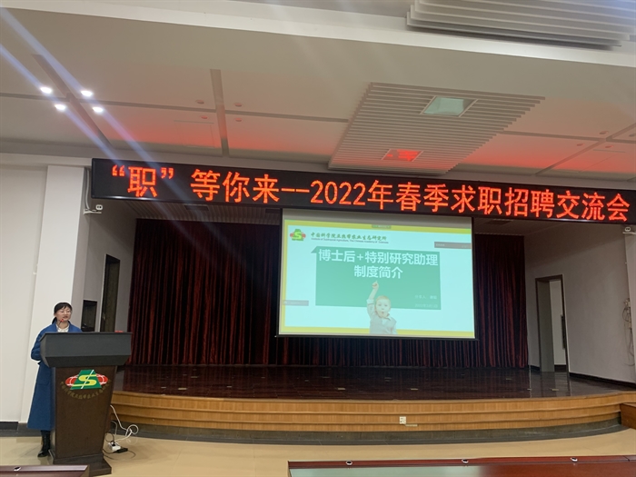 该所人事教育处副处长谢聪介绍了国内博士后招收制度、流程和博士后基金申请以及中科院特别研究助理招收政策,同时还简要介绍了湖南省、长沙市的人才政策,并诚邀有志从事科研工作的毕业生加入到中科院和该所博士后(特别研究助理)的行列。