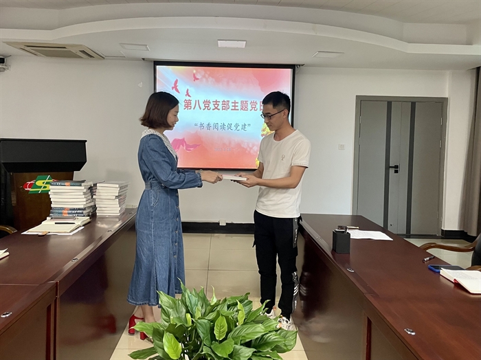 现场还进行了书籍赠阅活动,党支部书记叶冬煦将书籍赠阅给现场学生党员,希望大家与书结缘,互相分享阅读的快乐。