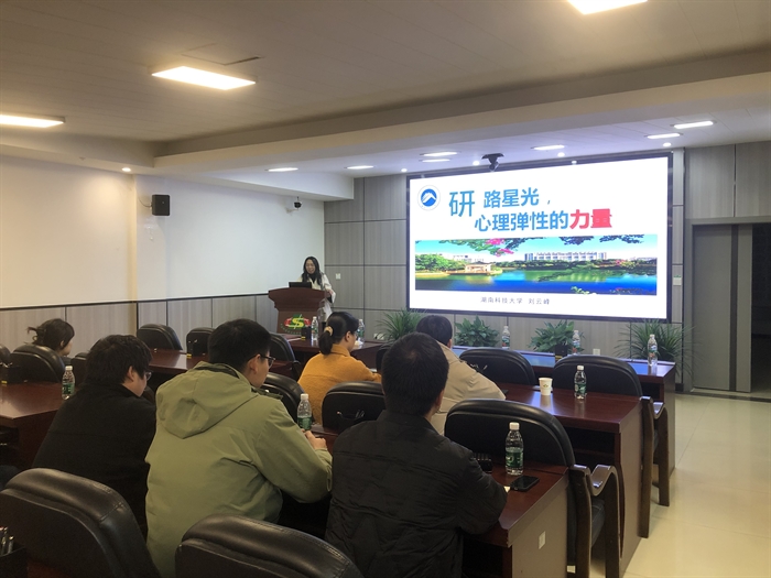 活动邀请到湖南科技大学心理健康教育中心主任、国家二级心理咨询师刘云峰开展题为“研路星光,心理弹性的力量”的培训。刘云峰结合“航天之父”钱学森、共和国勋章获得者钟南山、中国首位诺贝尔医学奖获得者屠呦呦等科学名家事迹,以及生动的教育案例,深入浅出的分析科研人员应有的人格特质和必备的心理素养。通过现场互动讨论和实操练习,她教授大家利用微运动、观呼吸法、社会支持等途径调适遇到的科研挫折或导学关系问题,通过悦纳自我、接纳情绪、合理宣泄放松等方式做好自己情绪的主人。她强调,心理弹性不仅是大家在面对逆境时恢复并成长的能力,更是实现个人潜能、提升生活质量的关键。