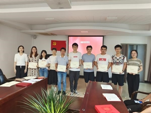 最后,叶冬煦带领第八党支部重温了入党誓词,并对支部中获得2020-2021年中国科学院大学优秀学生、优秀学生干部的党团员进行了颁奖,对积极参与所“庆百年华诞 传红色基因”朗诵比赛者进行了颁奖。