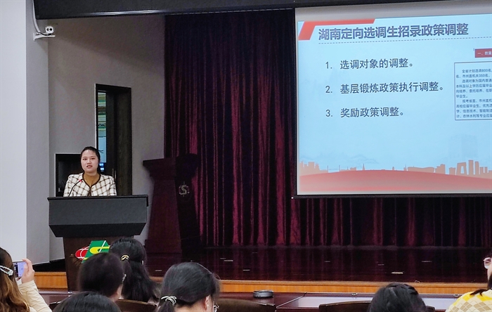 2019届毕业生邹巧云(湖南省2019届定向选调生,现任职于雨花区同升街道基层党建办)分享了关于定向选调生招录政策以及备考策略,并介绍了基层工作经历,告诉有意向报考选调生的同学,就要做好一切从零开始的打算,丢掉学历光环,做好为人民服务的“孺子?!?。